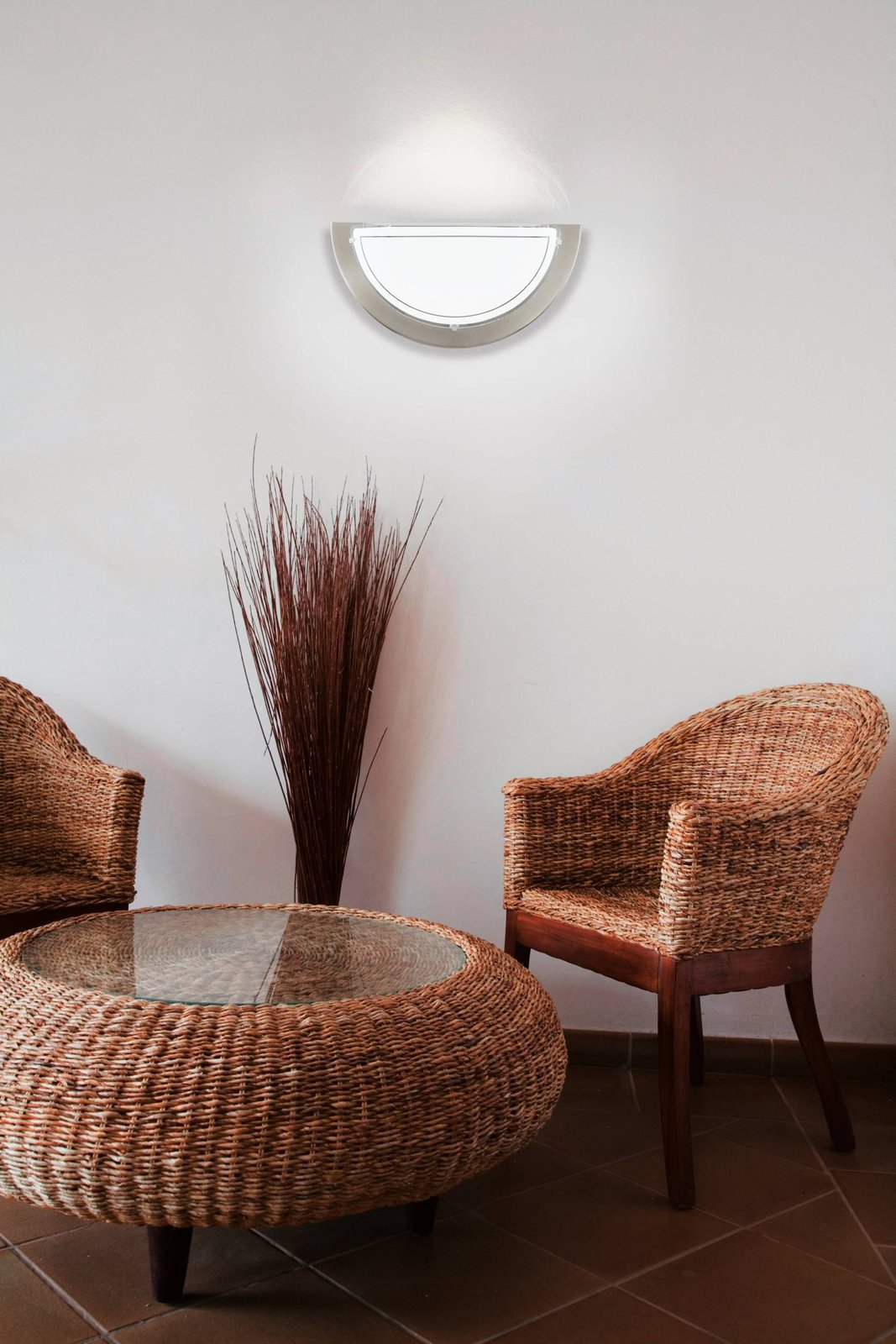 Eine schlichte Lampe aus Stahl und Glas. Es eignet sich für Flure, Flure, Toiletten usw. |