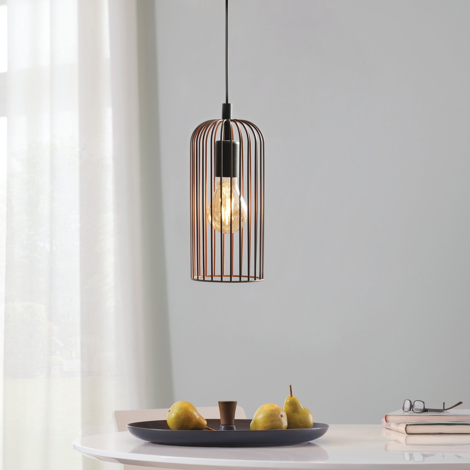 Roccamena-Lampen sind in einem modernen Stil gefertigt. Der Sockel besteht aus schwarzem Stahl und der Schirm ist ein kupferfarbener Drahtzylinder. Durch die Wahl eines interessanten Leuchtmittels kann das Gesamtbild der Leuchte unterstrichen werden. Es eignet sich für Wohnzimmer, Küche, Esszimmer, Schlafzimmer, aber auch Flure und Flure. |