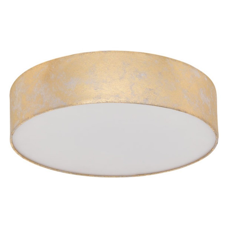Die modernen Viserbella-Lampen bestehen aus Stahl in der Farbe Champagner und Textil in der Farbe Gold.