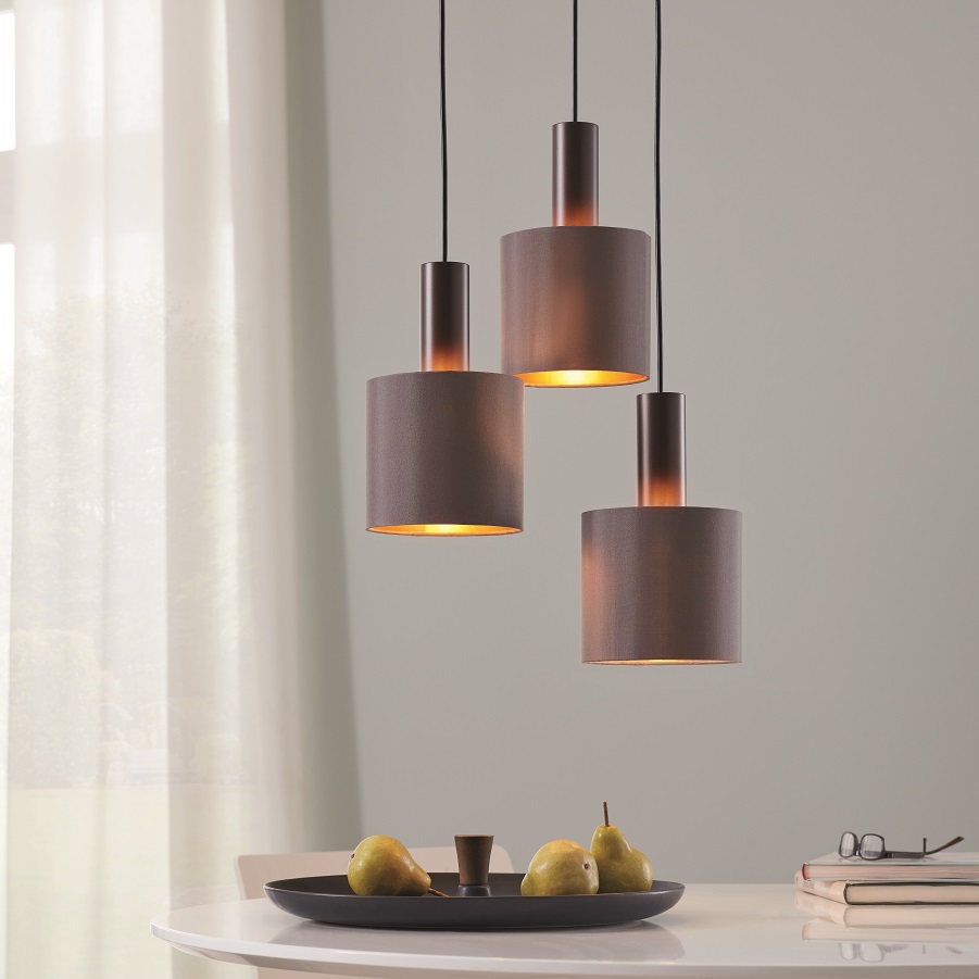 Die modernen Leuchten Concessa 1 bestehen aus dunkelbraunem Stahl und Textil in einer Kombination aus Cappuccino und Gold. Durch die Kombination aller Leuchten aus diesem Set schaffen Sie ein komplettes Interieur. |