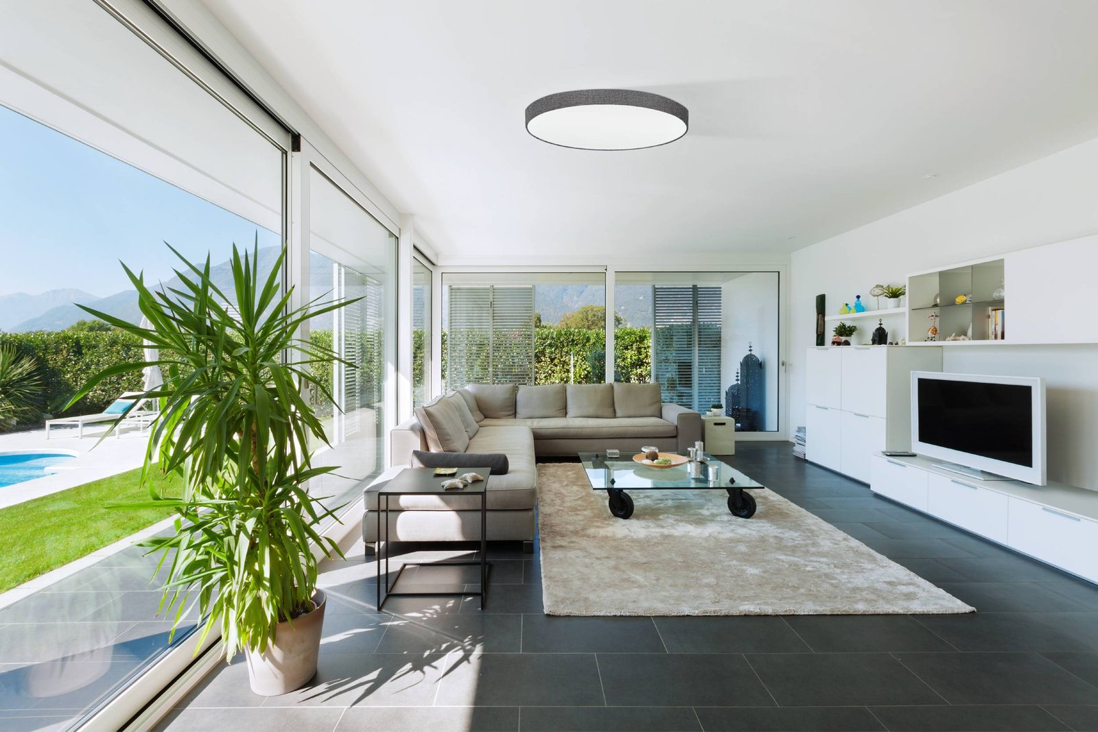 Schlichte, aber sehr moderne und geschmackvolle Deckenleuchten aus Stahl in weißer Farbe und Textil in grauer Farbe. Der Diffusor ist weiß. Es passt in alle modernen Innenräume, wo es eine geschmackvolle Ergänzung sein wird. |