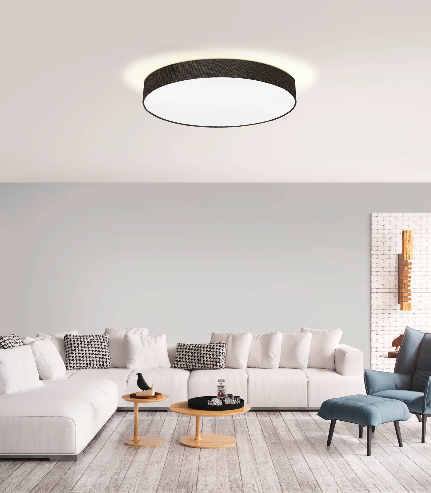 Runde Deckenleuchten, die für alle Innenräume geeignet sind. Sie bestehen aus Stahl in Weiß und Textil in Braun und Weiß. Sie werden vor allem im Wohnzimmer, aber auch im Schlafzimmer, Arbeitszimmer oder Flur auffallen. |