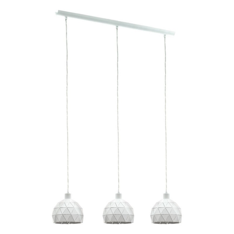 Pendelleuchten im Stil, die für alle modernen Innenräume geeignet sind. Sie sind aus Stahl in weißer Farbe hergestellt. Der Schirm besteht aus kleinen verbundenen Dreiecken, durch die das Licht scheint, wenn die Lampe eingeschaltet ist, was sehr spektakulär aussieht.