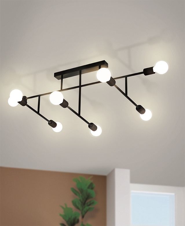 Sehr interessante Deckenleuchten aus Stahl in schwarzer Farbe. Sie werden sicherlich ein interessantes Element in einem modernen Wohnzimmer sein.