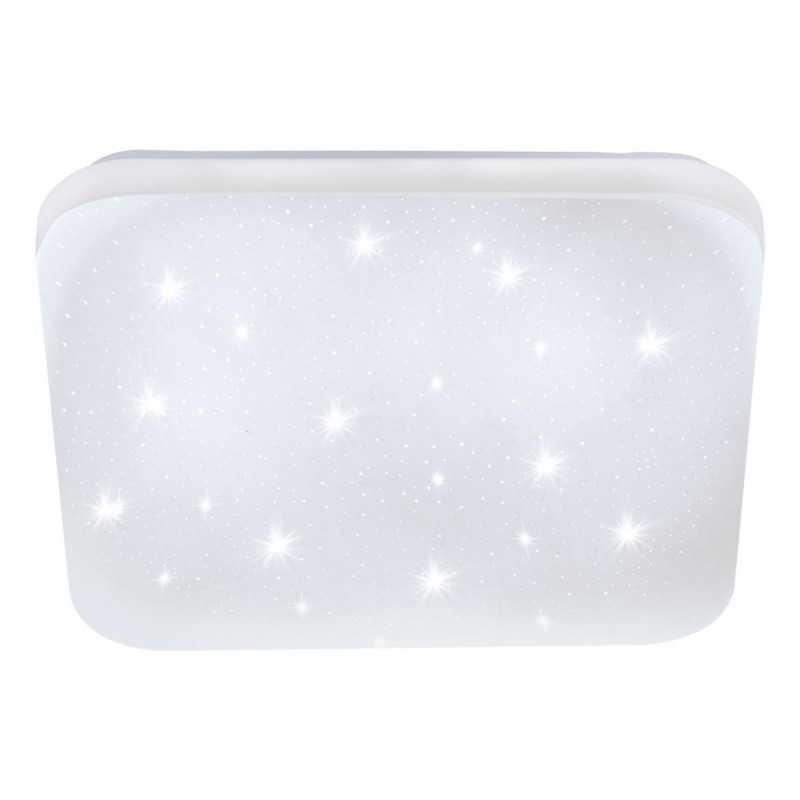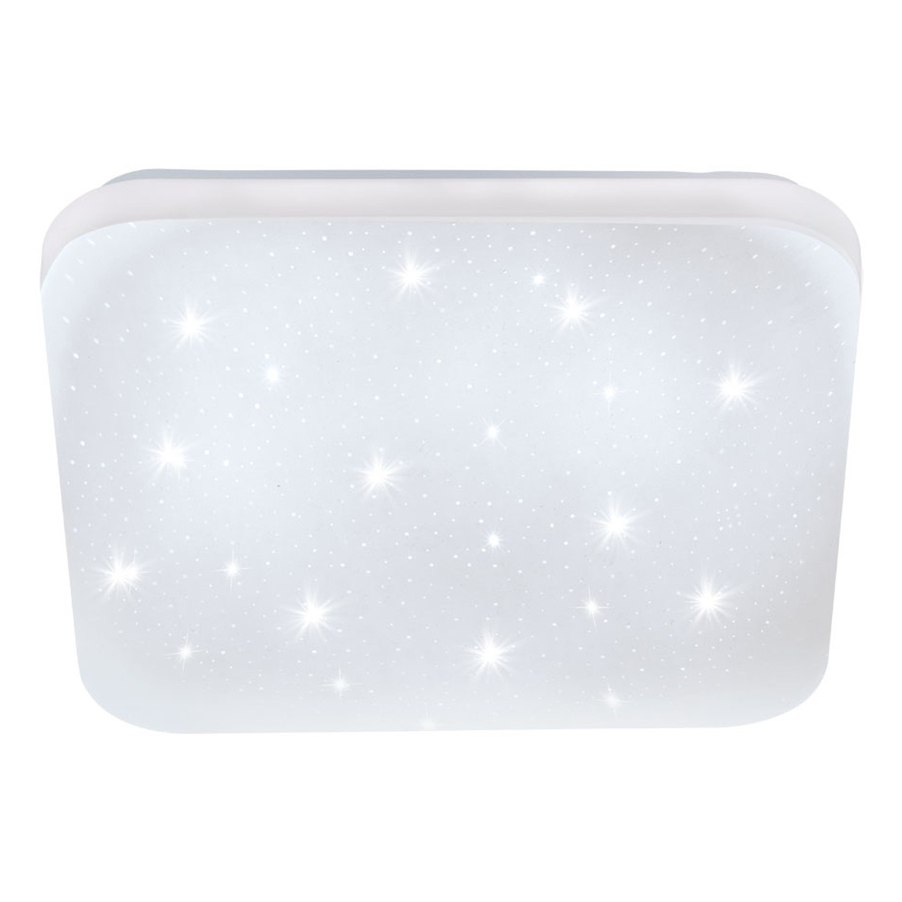 Quadratische Deckenleuchten mit der Möglichkeit, sie auch an der Wand zu platzieren. Sie bestehen aus Stahl und Kunststoff in weißer Farbe mit Glitzereffekt. Dadurch eignen sie sich nicht nur für das Wohn- und Schlafzimmer, sondern auch für das Kinderzimmer oder den Flur. Sie strahlen in einem warmweißen Farbton und sind nicht dimmbar.