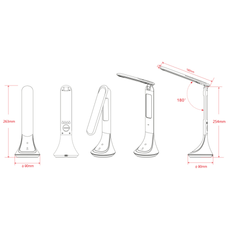 GL-58329W Stolní lampa, plast, bílá, hodiny, kalendář, budík, s adaptérem, zapnutí dotykem, dotykový stmívač, včetně 3,7V 1200mAh Li-ion, ?xV: 20x43cm, včetně 1xLED 4W 230V, 30-200lm, 4000K. -