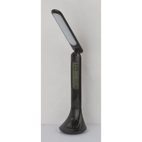 GL-58329B Stolní lampa, plast, černá, hodiny, kalendář, budík, s adaptérem, zapnutí dotykem, dotykový stmívač, včetně 3,7V 1200mAh Li-ion, ?xV: 20x43cm, včetně 1xLED 4W 230V, 30-200lm, 4000K. -
