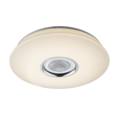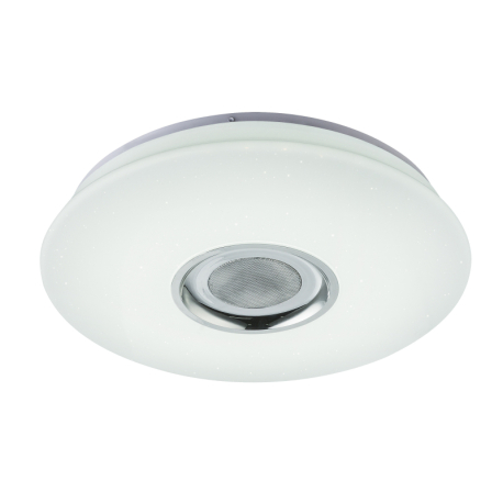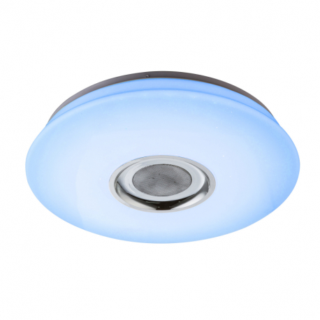GL-41329-18 Stropní svítidlo, plast bílý, třpytivý efekt,ovládání aplikací,5W reproduktor,stmívatelné,dál. ovládání,měnič barvy, fixace barev, Ø40cm, V:7cm, včetně 1xLED 18W 230V, 128-1280lm, 1xRGB LED 6W 230V, multicolor, změna barvy světla 3000-4000-6500K -