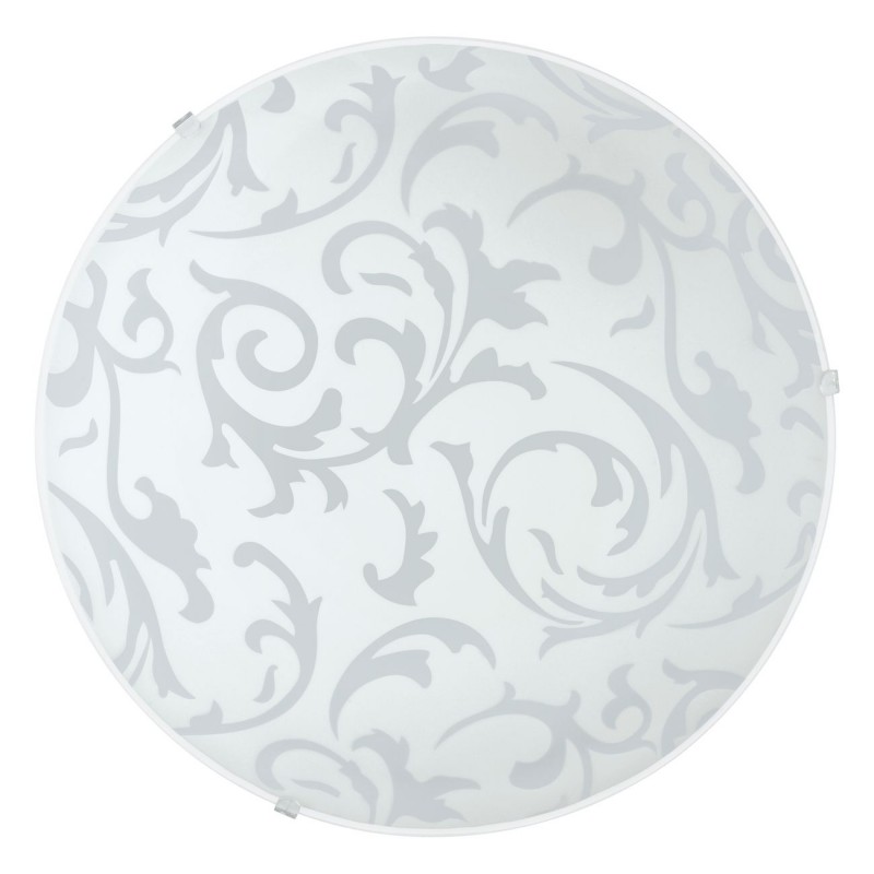 Eine runde Lampe, die an der Wand oder Decke montiert werden kann. Es besteht aus weißem Stahl und satiniertem Glas mit Dekor. Es eignet sich für Wohnzimmer, Schlafzimmer, Flure und Büros. |