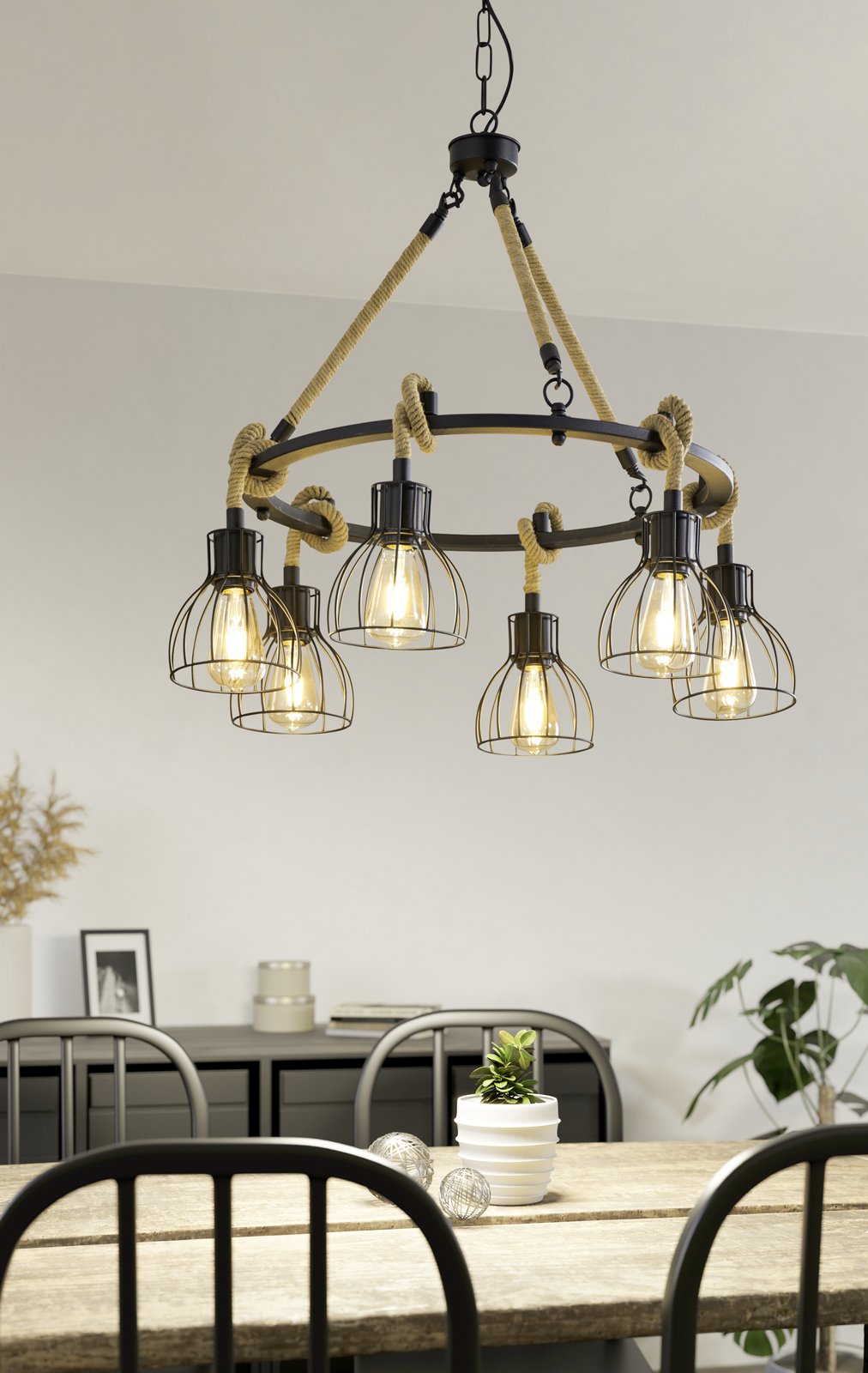 Stilvolle Lampen im Vintage-Stil, geeignet für Küchen, Esszimmer und Wohnzimmer. Sie bestehen aus Stahl und einem Seil, an dem die Detektoren angebracht sind. |