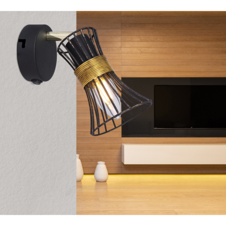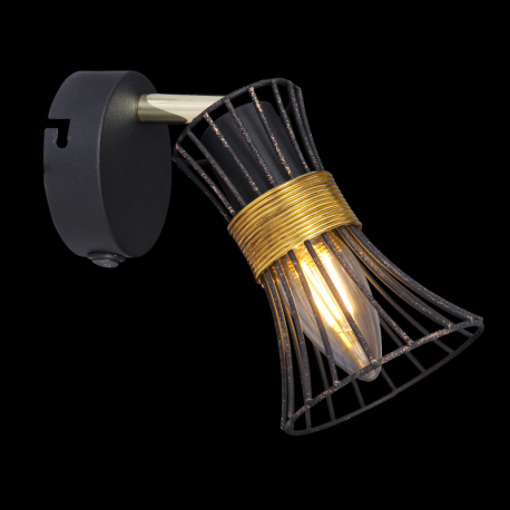 GL-54814-1 Nástěnné svítidlo, kov černý a zlatý, kovové tyče černé a zlaté, vypínač, ?xV: 9x16cm, H: 11cm, bez žárovky 1xE14, max. 40W 230V -