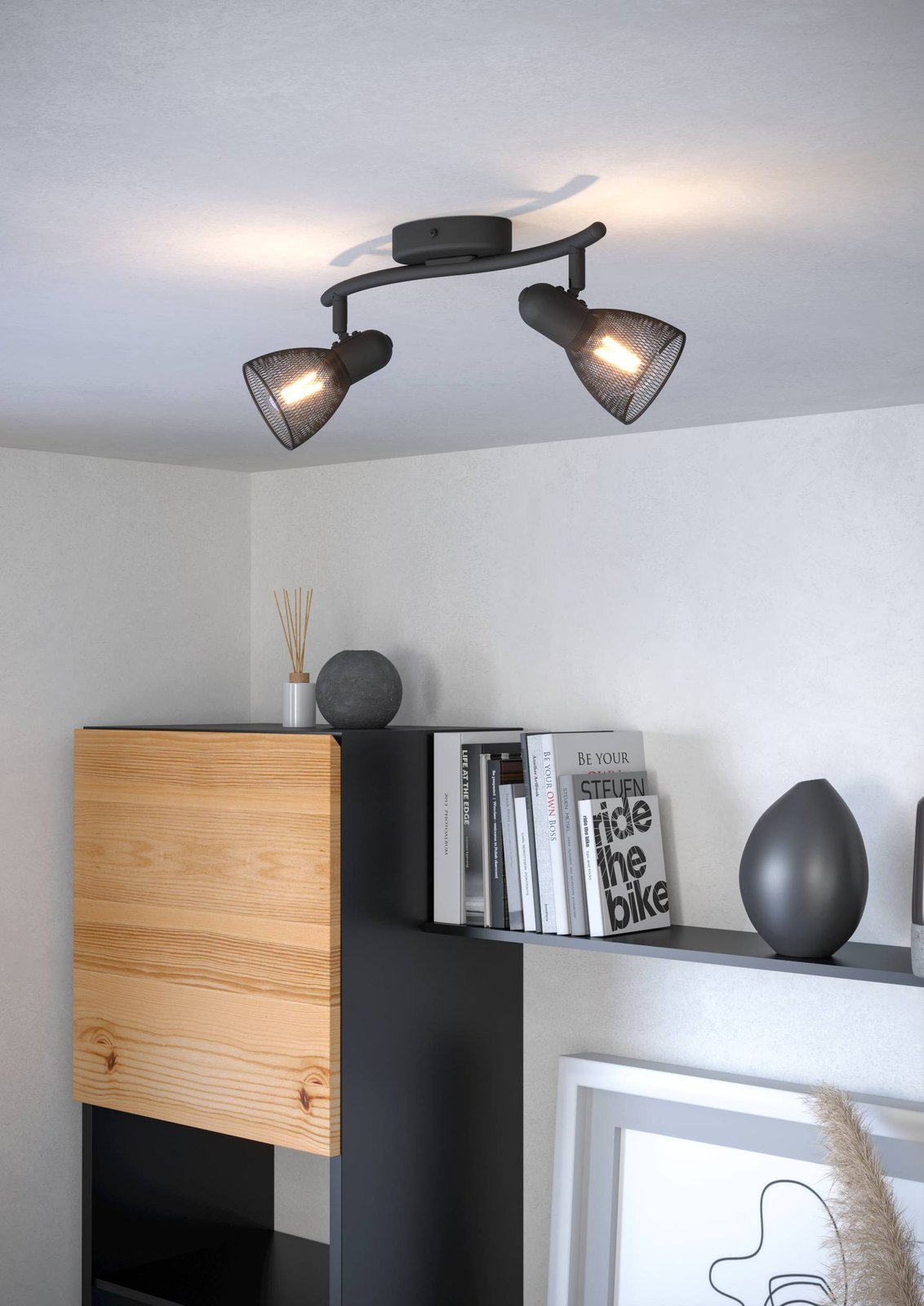 Die stilvollen Strahler Carovigno sind aus schwarzem Stahl gefertigt. Sie eignen sich für alle modernen Innenräume. Der Kopf ist beweglich, sodass Sie ihn drehen und dorthin richten können, wo Sie glänzen möchten. |
