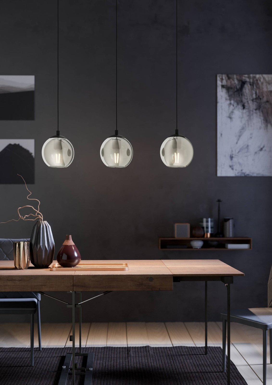 Moderne Ariscani-Pendelleuchten bestehen aus schwarzem Stahl und Rauchglas. Sie eignen sich für Küchen und Esszimmer, über Kücheninseln, Esstischen, aber auch für Wohnzimmer. |