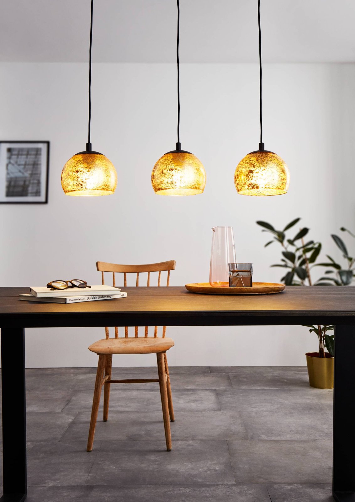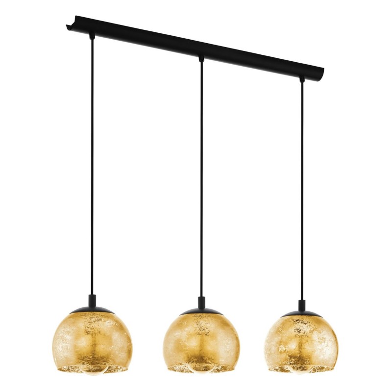 Schöne moderne Lampen, besonders geeignet für Küchen und Esszimmer über dem Küchentisch oder der Kücheninsel. Sie bestehen aus schwarzem Stahl und goldenem Glas. Es besteht die Möglichkeit, sie mit einem smarten LED-Leuchtmittel auszustatten und über ein Smartphone zu steuern, zu dimmen oder die Farbe der Beleuchtung zu ändern. |