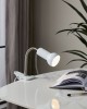 Einfache Lampen mit Clip zur einfachen Platzierung der Lampe auf einem Schreibtisch oder Regal im Büro oder Arbeitszimmer. Sie haben einen flexiblen Hals. Sie bestehen aus Stahl und Kunststoff. |