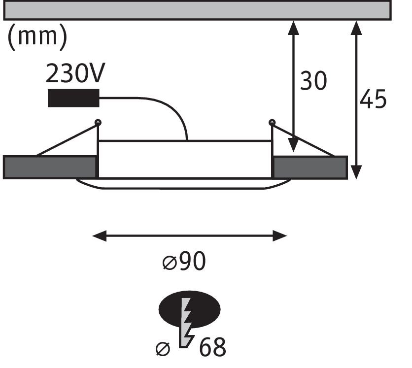 | Ausschnitt | 68 mm |