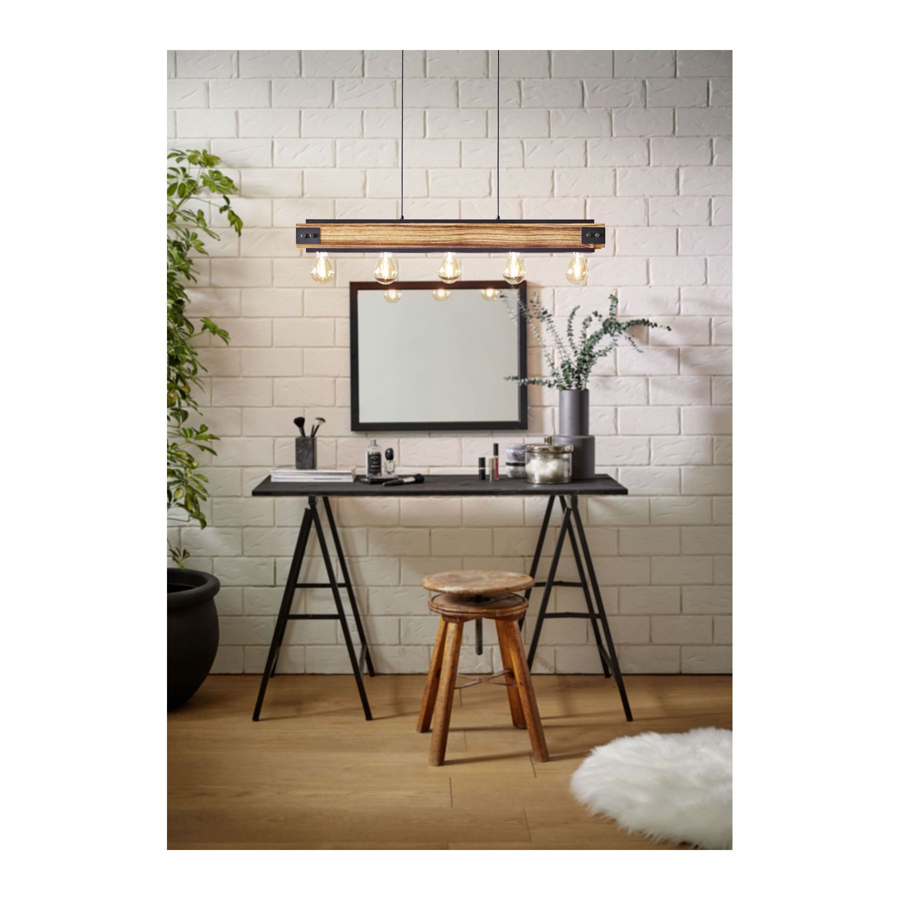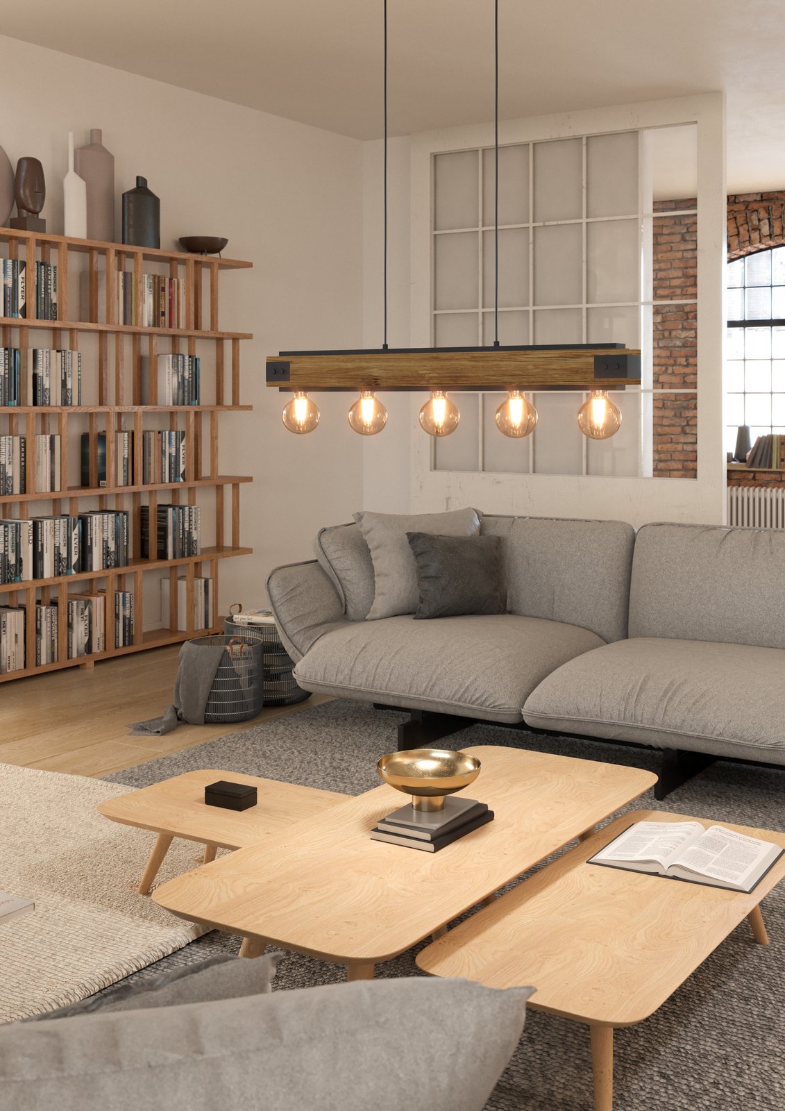 Stilvolle und moderne Lampen, die für alle modernen Innenräume geeignet sind. Sie passen ins Wohnzimmer, in die Küche über den Esstisch, fallen aber auch im Flur, Flur und Schlafzimmer auf. Sie bestehen aus Stahl in Schwarz und Holz in Braun. |