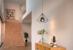 Stilvolle Kronleuchter aus schwarzem Stahl und Rauchglas. In einem Schirm aus Stahldrähten ist eine Glaskugel versteckt. Diese Lampen werden ein interessantes Element in Ihrem modernen Zuhause sein. |