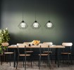 Stilvolle Kronleuchter aus schwarzem Stahl und Rauchglas. In einem Schirm aus Stahldrähten ist eine Glaskugel versteckt. Diese Lampen werden ein interessantes Element in Ihrem modernen Zuhause sein. |