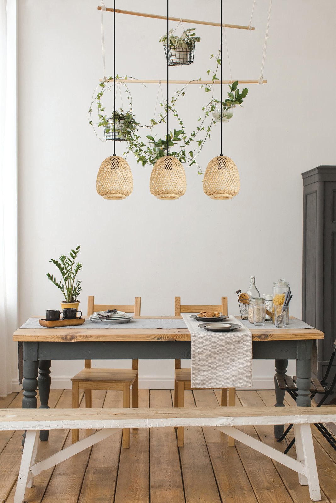 Die eleganten Dembleby-Pendelleuchten bestehen aus schwarzem Stahl und naturbraunem Holz. Es passt in Innenräume, die auf einen romantischen Stil abgestimmt sind. |