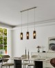 Schlichte, aber moderne Kronleuchter, geeignet für Wohnzimmer oder Küche, über dem Esstisch als interessantes Element. Sie bestehen aus Stahl und einem Glaszylinder.