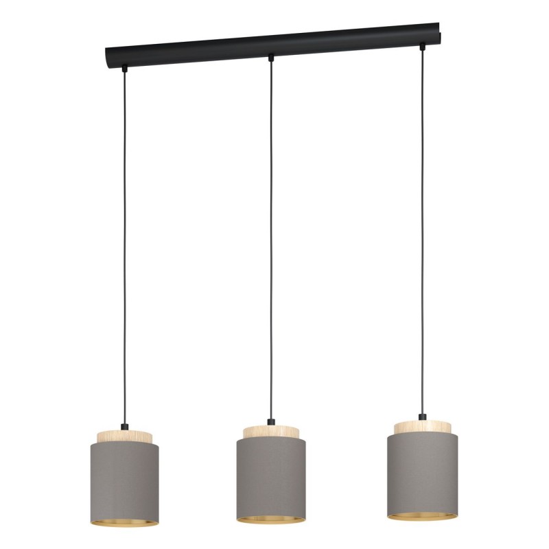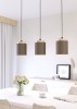 Schöne, moderne Lampen, die vor allem für Küchen und Esszimmer über dem Esstisch oder der Kücheninsel geeignet sind, aber auch im Wohnzimmer ein interessantes Element sein werden. Sie bestehen aus schwarzem Stahl mit einem braunen Holzelement und aus Textil in den Farben Cappuccino und Gold. |