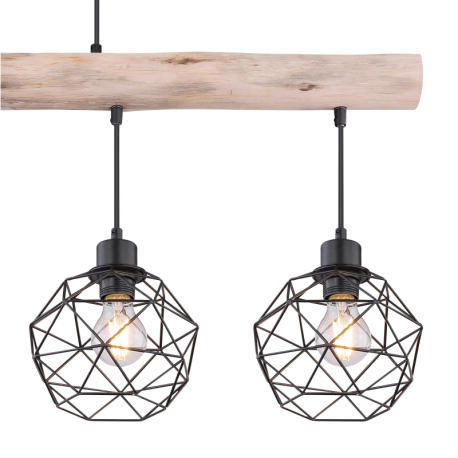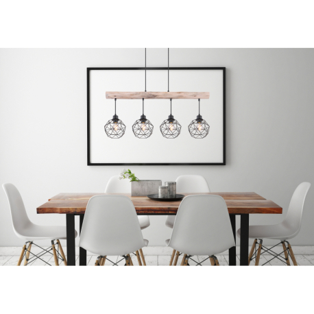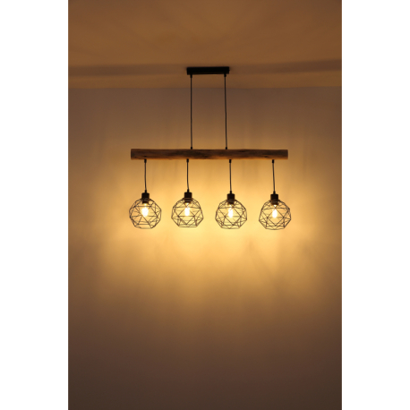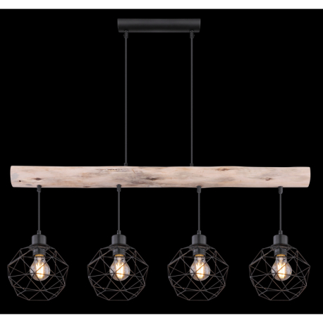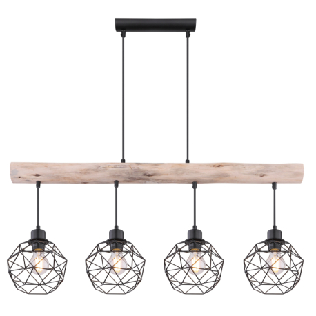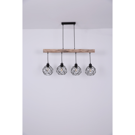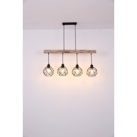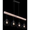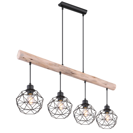GL-15416-4 Závěsné svítidlo, kov černý matný, přírodní dřevo, kov černý matný, stínítko - kovová mřížka, Dx?xV: 85x18x120cm, bez žárovek 4xE27, max. 60W 230V -