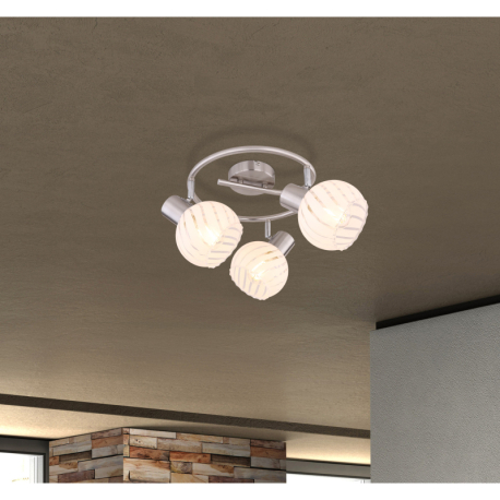 GL-54025-3 Stropní svítidlo, nikl, sklo průhledné bílé, Ø28cm, V:19cm, bez žárovek 3xE27, max. 40W 230V -
