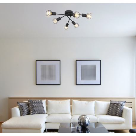 GL-54802S-6 Stropní svítidlo, černý kov, Ø63cm, V:18cm, bez žárovek 6xE14, max. 40W 230V -