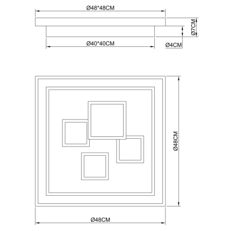 GL-48405-50Q Stropní svítidlo, kov bílý, akryl bílý, funkce paměti, stmívatelné, dálkové ovládání, fixace barev, Dx?xV: 48x48x7cm, včetně 1xLED 50W 230V, 100-3300lm, změna barvy světla 3000-6000K -