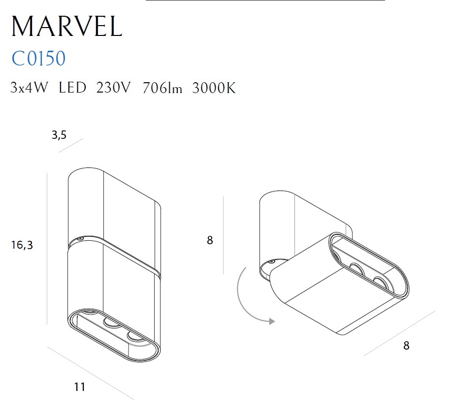 | Wattage | LED 3x4 W |