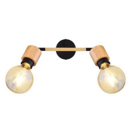 GL-54031-2 Nástěnné svítidlo, kov černý, světlé dřevo, Dx?xV: 30x8x16cm, bez žárovek 2xE27, max. 40W 230V -