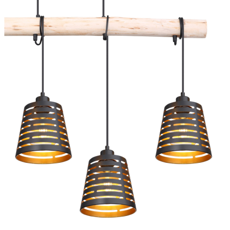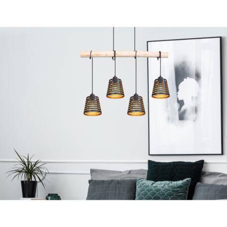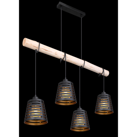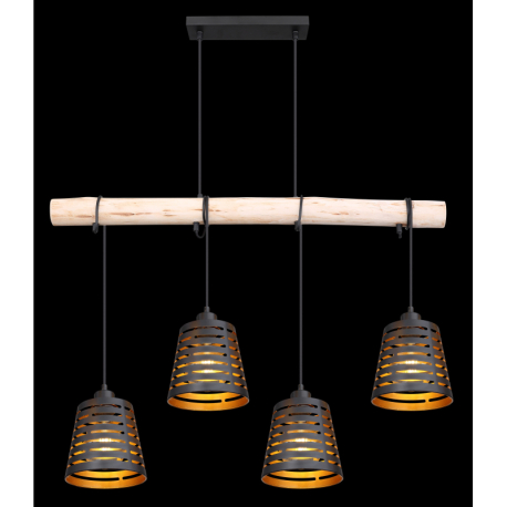 GL-15451-4H Závěsné svítidlo, kov černý matný, dřevo, kov černý a zlatý, Dx?xV: 85x17x120cm, bez žárovek 4xE27, max. 60W 230V -