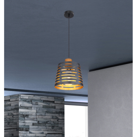 GL-15451H Závěsné svítidlo, kov černý matný, dřevo, kov černý a zlatý, Ø25cm, V:120cm, bez žárovky 1xE27, max. 60W 230V -