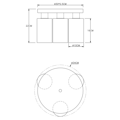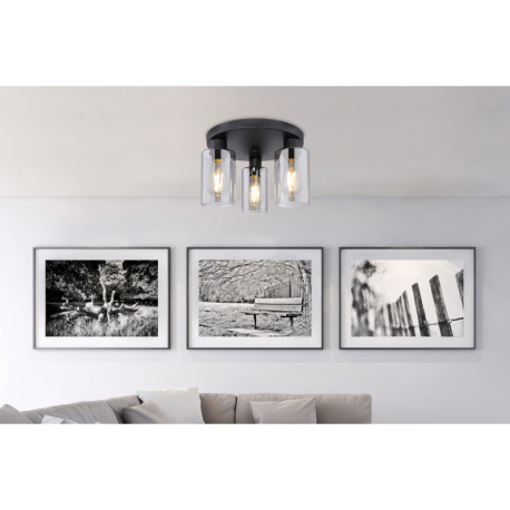 GL-15465-3D Stropní svítidlo, kov černý, kouřové sklo, Ø34cm, V:22cm, bez žárovek 3xE27, max. 60W 230V -