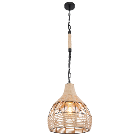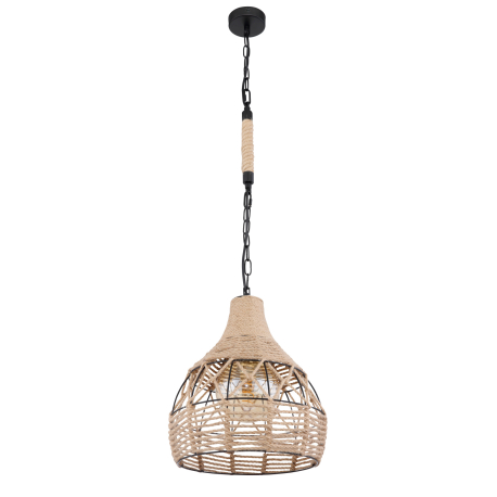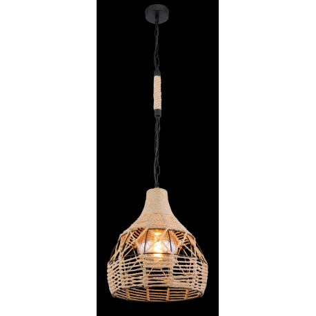 GL-15671H Závěsné svítidlo, kov černý matný, konopné lano hnědé, černý řetěz, Ø30cm, V:135cm, bez žárovky 1xE27, max. 60W 230V -