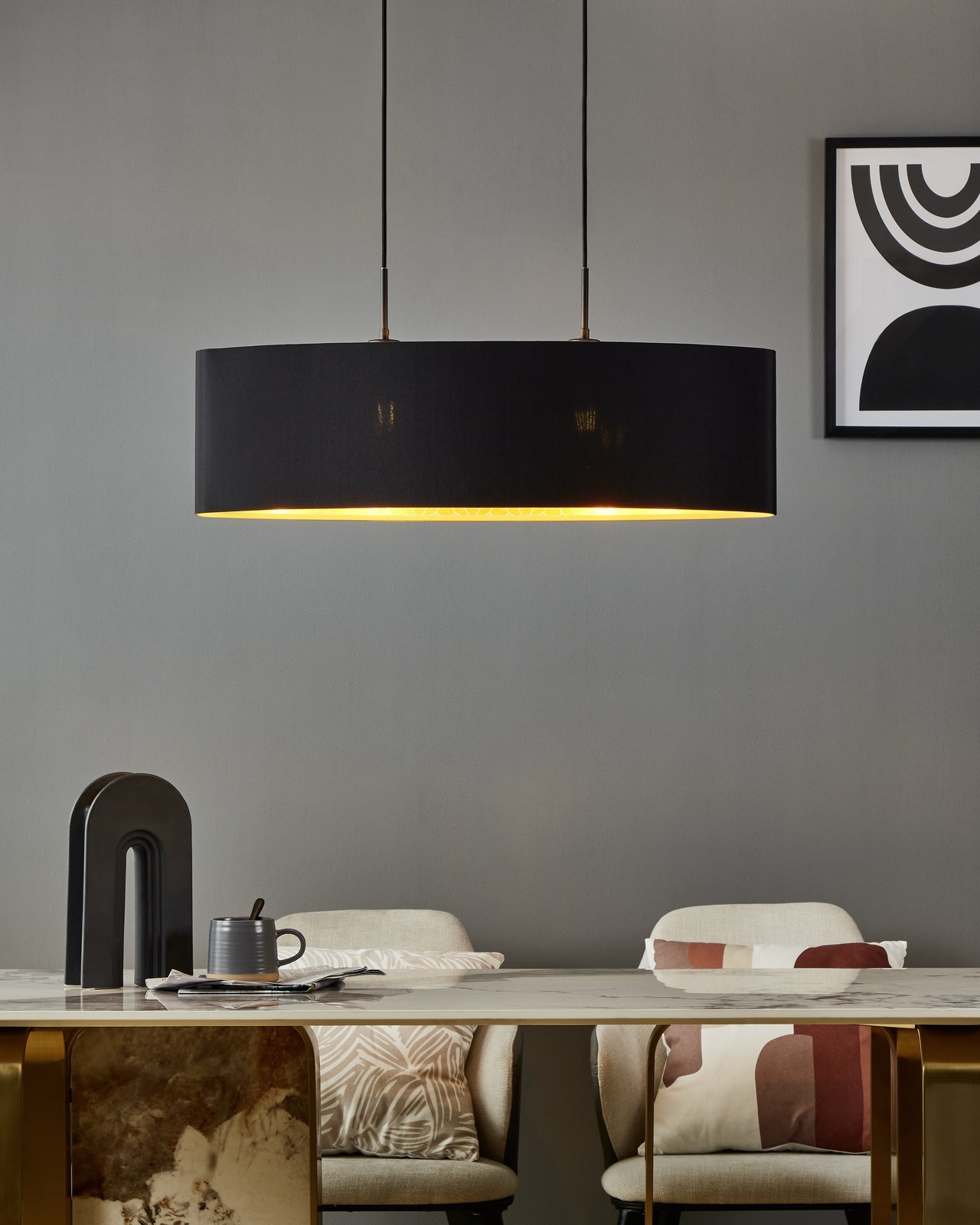 Moderne und elegante Lampen aus Stahl in Schwarz und Textil in Schwarz und Gold mit Dekor. Sie eignen sich für den gesamten Innenraum. Sie werden im Wohnzimmer, in der Küche, im Esszimmer, im Schlafzimmer und im Flur auffallen. Es ist möglich, sie mit einer intelligenten LED-Glühbirne auszustatten und sie über eine Smartphone-App zu dimmen und die Temperatur und Farbe der Beleuchtung zu ändern. |