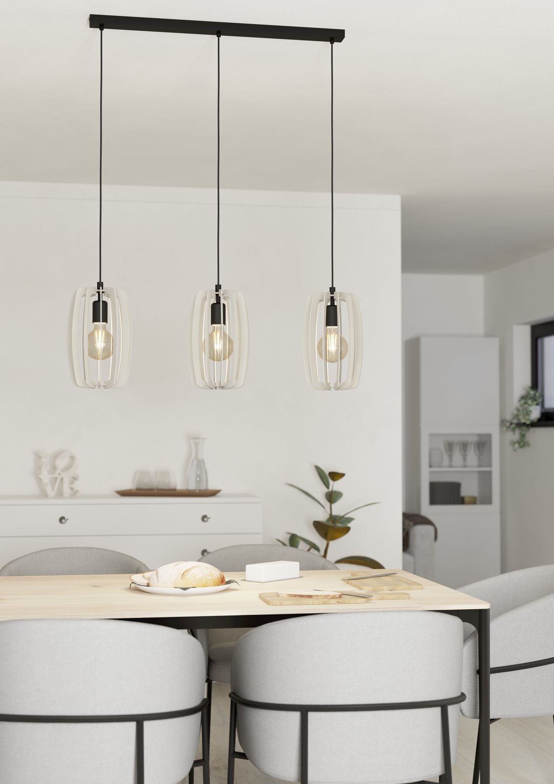 Interessante Pendelleuchten für moderne Innenräume. Sie bestehen aus Stahl und Holz. Es besteht die Möglichkeit, sie mit einer smarten LED-Glühbirne auszustatten und diese über Ihr Smartphone zu dimmen oder die Temperatur und Farbe der Beleuchtung zu ändern.