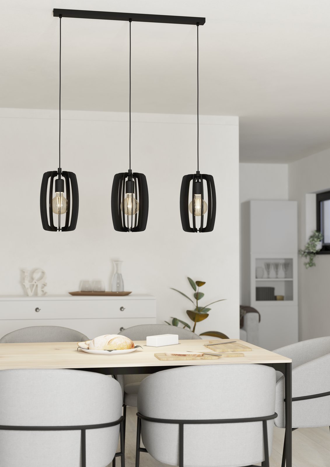 Interessante Pendelleuchten für moderne Innenräume. Sie bestehen aus Stahl und Holz. Es besteht die Möglichkeit, sie mit einer smarten LED-Glühbirne auszustatten und diese über Ihr Smartphone zu dimmen oder die Temperatur und Farbe der Beleuchtung zu ändern.