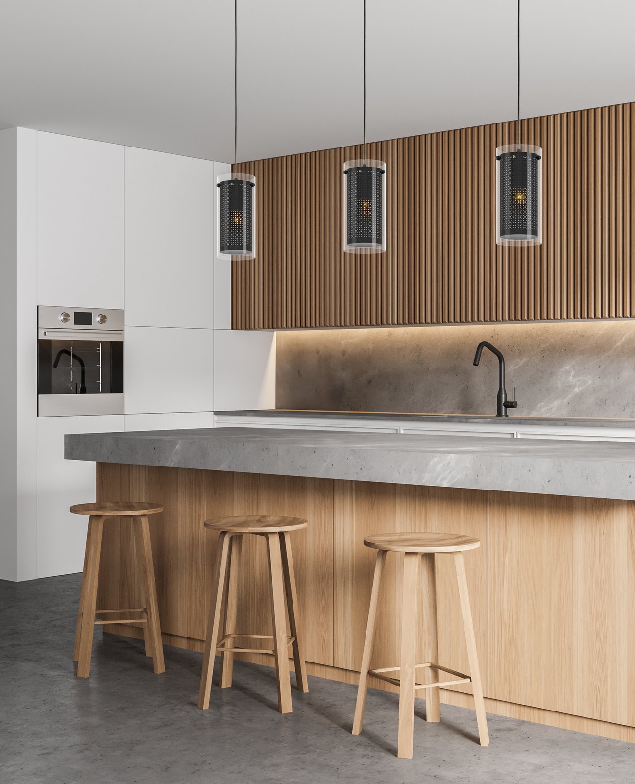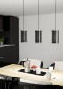 Moderne, stilvolle Lampen Pinto Textil 2. Der Sockel besteht aus Stahl in schwarzer Farbe, der Schirm besteht aus einem Glaszylinder in klarer Farbe, in dessen Inneren sich ein Textilzylinder in schwarzer Farbe befindet. Nach dem Anzünden dringt das Licht auch durch das Dekor im Textil im Inneren des Zylinders, was sehr effektvoll wirkt. |