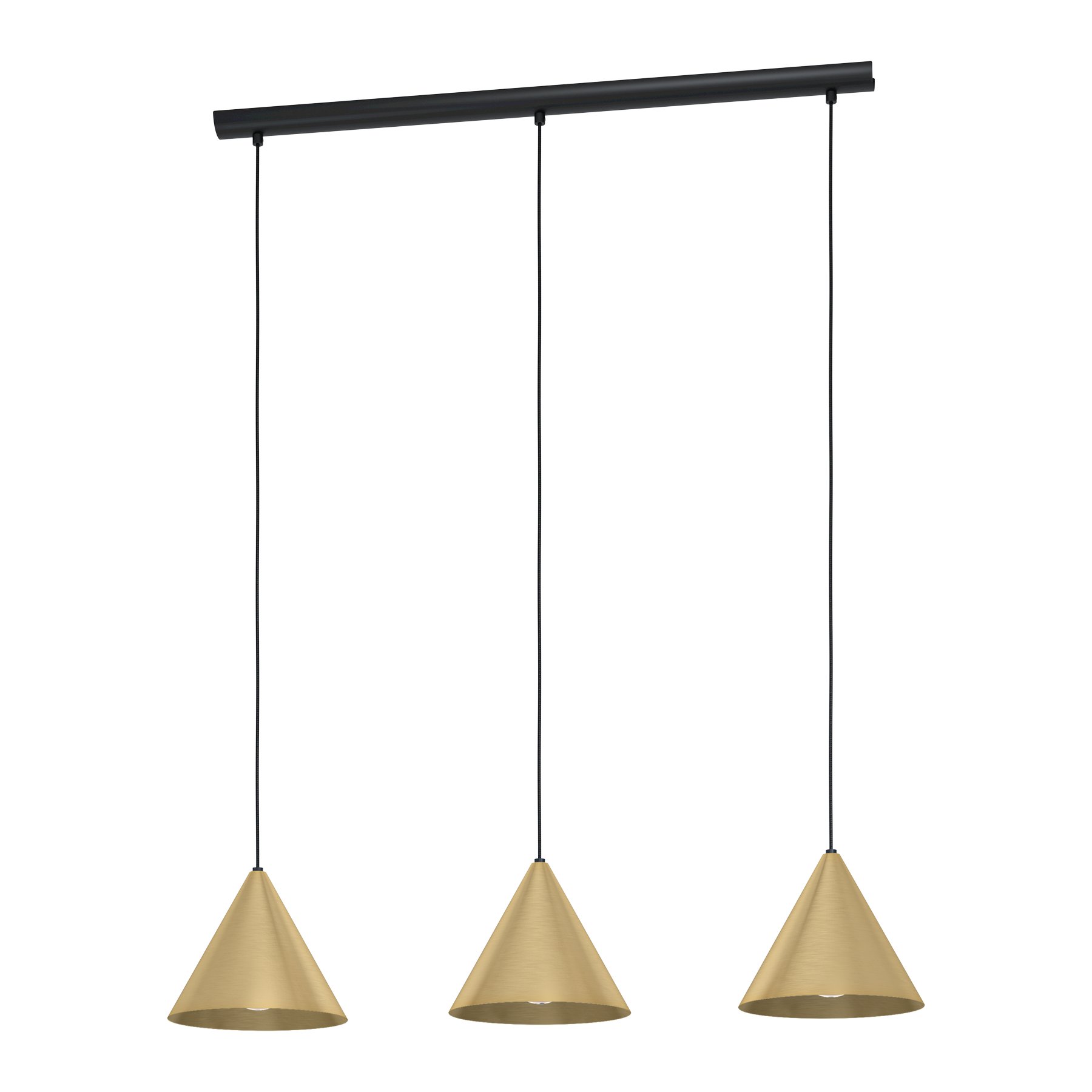Moderne und stilvolle Kronleuchter für Küchen und Esszimmer, aber auch für Wohnzimmer. Sie bestehen aus Stahl in schwarzer Farbe und der Schirm besteht aus Stahl in einer Kombination aus Messing und Gold.