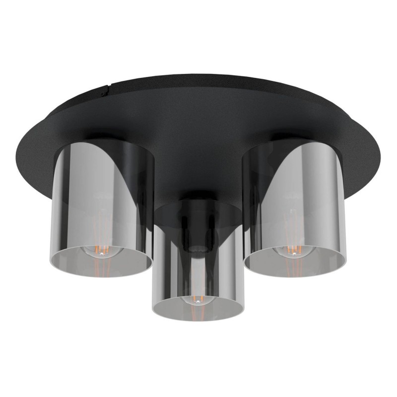 Sehr schöne Deckenleuchten geeignet für Wohnzimmer, Küche, Esszimmer, aber auch für geräumige Flure. Sie bestehen aus schwarzem Stahl und Rauchglas. |