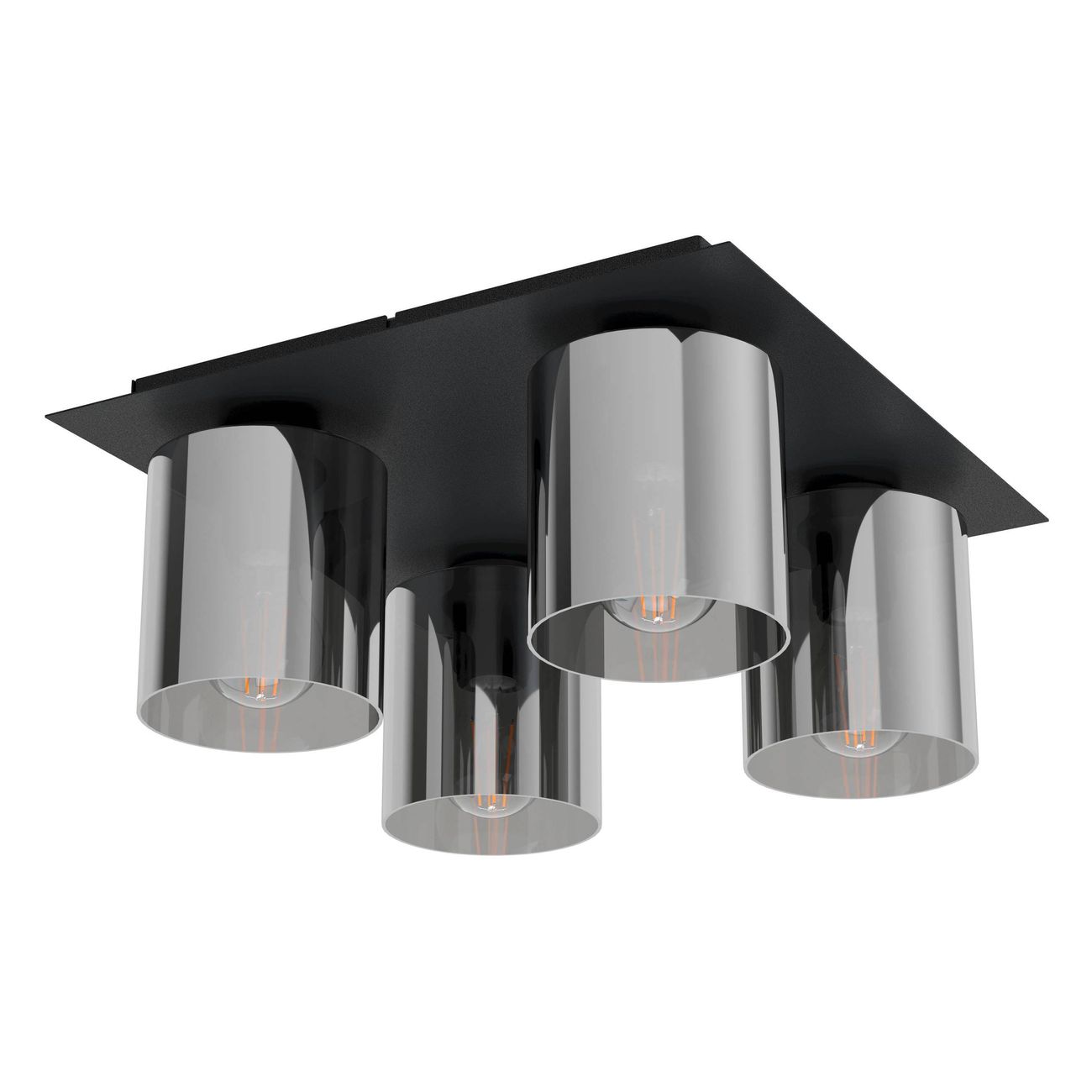 Sehr schöne Deckenleuchten geeignet für Wohnzimmer, Küche, Esszimmer, aber auch für geräumige Flure. Sie bestehen aus schwarzem Stahl und Rauchglas.