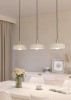 Moderne Pendelleuchten aus sandfarbenem Stahl mit Messingelementen. Es besteht die Möglichkeit, sie mit smarten LED-Leuchtmitteln auszustatten und diese über eine Smartphone-App zu dimmen sowie die Temperatur und Farbe der Beleuchtung zu ändern. Sie eignen sich nicht nur für Küchen und Esszimmer, sondern auch für Wohnzimmer.