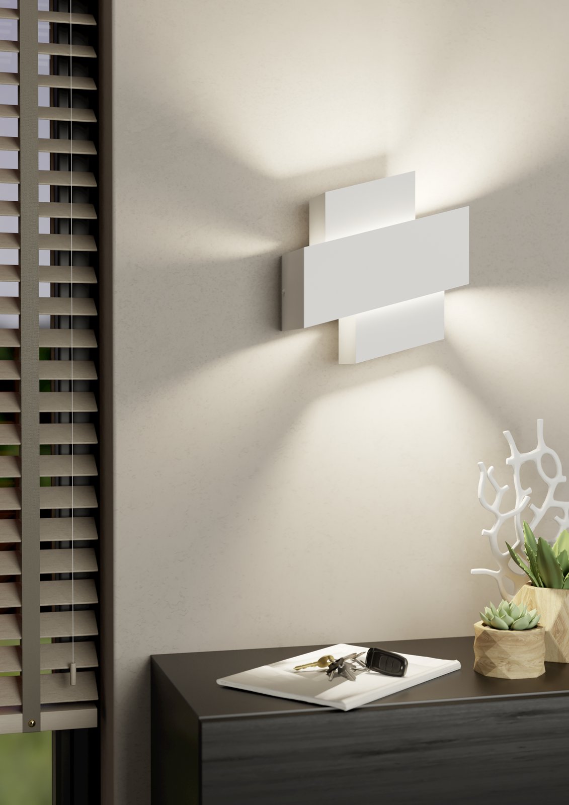Design-Wandleuchten aus Stahl. Sie eignet sich zur Beleuchtung der Wände im Wohnzimmer, aber auch im Flur und Flur. |