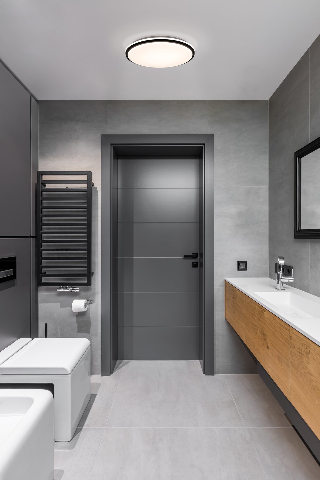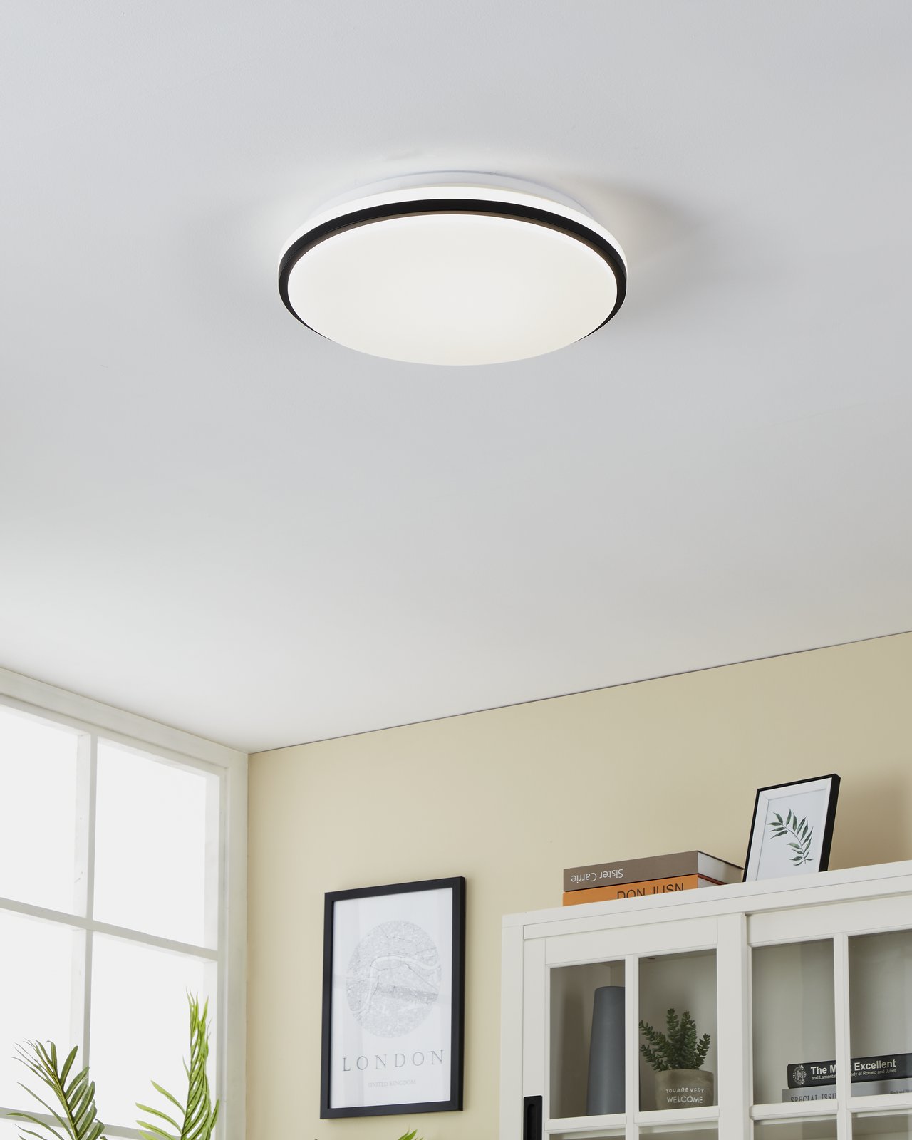 Moderne runde LED-Lampen sind dank IP44-Schutz auch für Badezimmer geeignet. Sie bestehen aus Stahl und Kunststoff. Sie erstrahlt in einem neutralen, warmen Farbton, der dem gewöhnlichen Tageslicht am ähnlichsten ist. Diese Lampen können nicht gedimmt werden. |