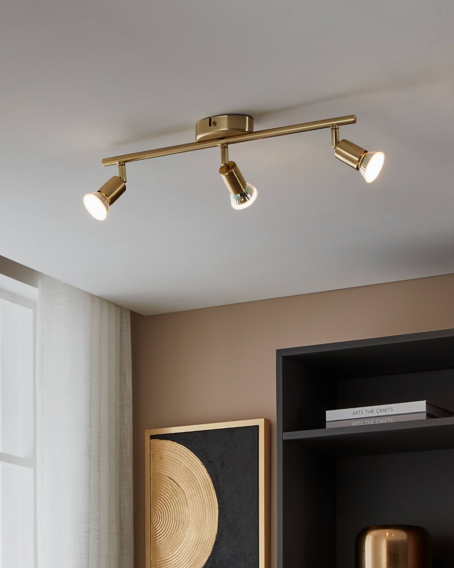 Klassische Strahler aus Stahl in der Farbe gebürstetem Messing. |