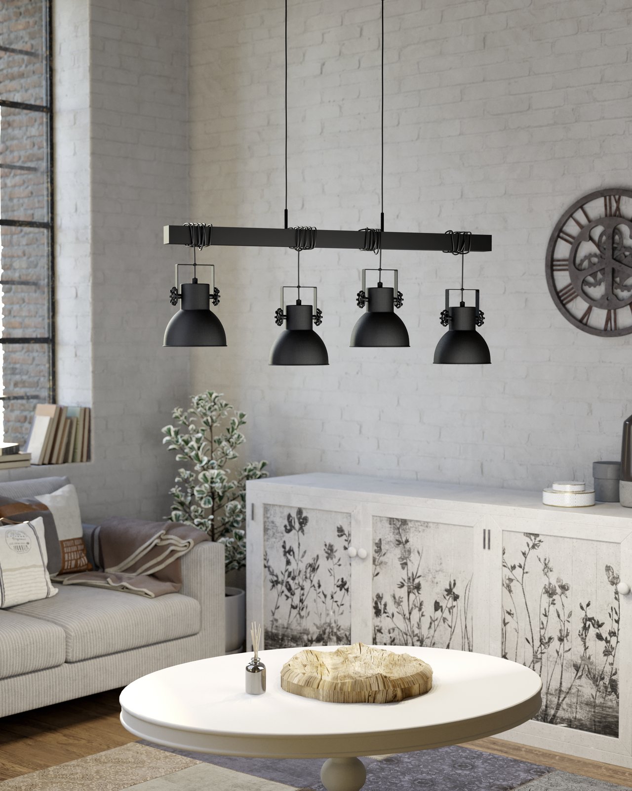 Interessante Hängelampe aus Stahl und Holz in schwarzer Farbe. Es passt in ein Interieur im Vintage-Stil. Es besteht die Möglichkeit, es mit smarten LED-Leuchtmitteln auszustatten und es über eine Smartphone-App zu dimmen oder die Temperatur und Farbe der Beleuchtung zu ändern. |