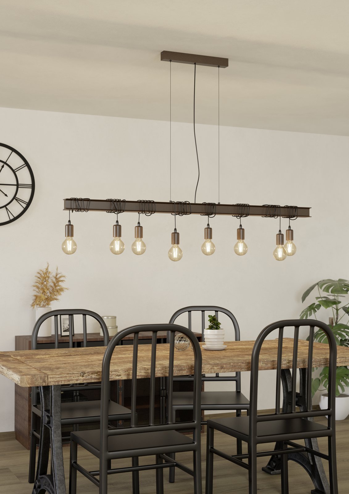 Stilvolle Lampen im Vintage-Stil. Sie eignen sich nicht nur für Küchen und Esszimmer, sondern auch für Wohnzimmer, Schlafzimmer usw. Sie bestehen aus Stahl in Schwarz und Antikbraun. Es besteht die Möglichkeit, sie mit einem stilvollen Leuchtmittel zu bestücken und so das Gesamtbild der Leuchte zu vervollständigen. |