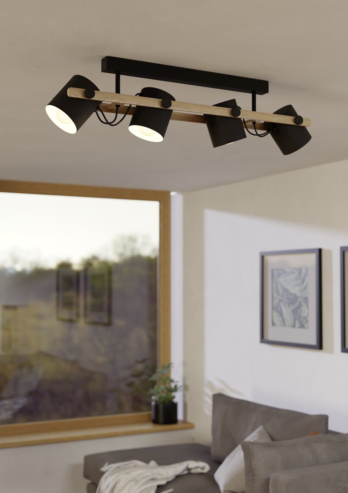 Egl-43558 DL/4 E27 SCHWARZ-CREME/HOLZ 'HORNWOOD' -